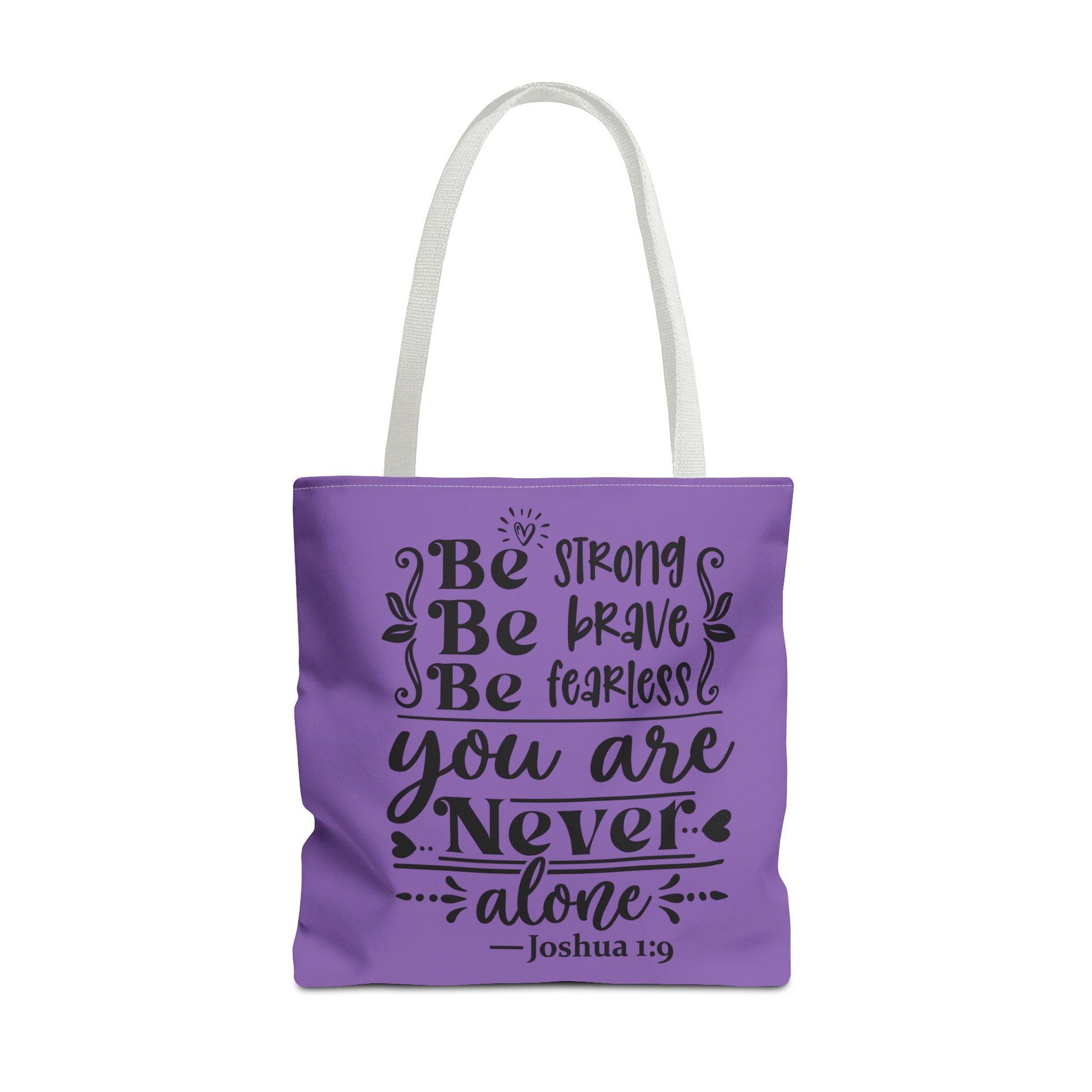 A stylish and functional Tote BAG. Made from durable 100% polyester, this tote is designed to withstand everyday use while retaining its shape. Its eye-catching design is inspired by Scripture - Joshua 1:9. Ideal for daily errands, gym visits, or beach outings. It makes a thoughtful gift for birthdays, mothers day, events or just because.