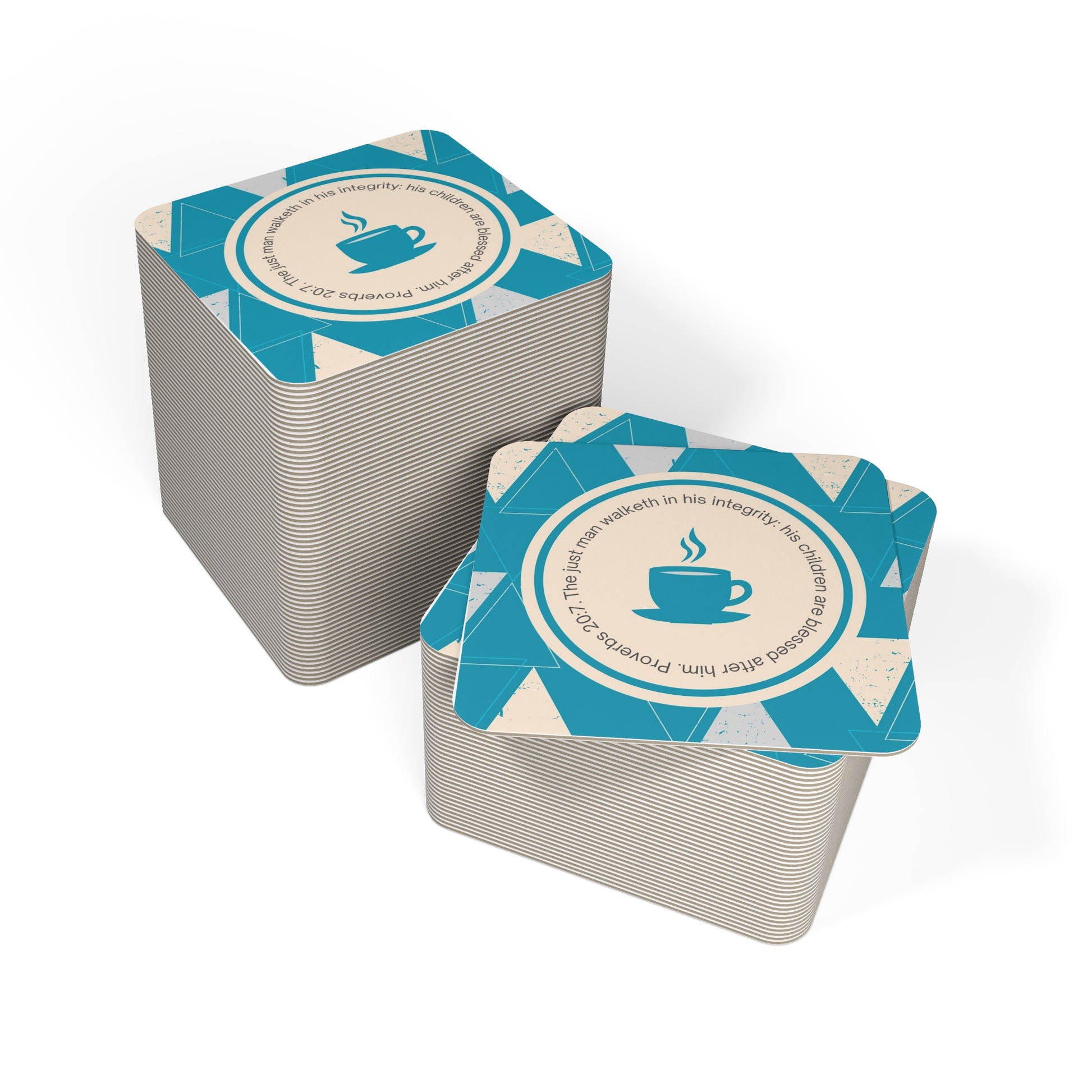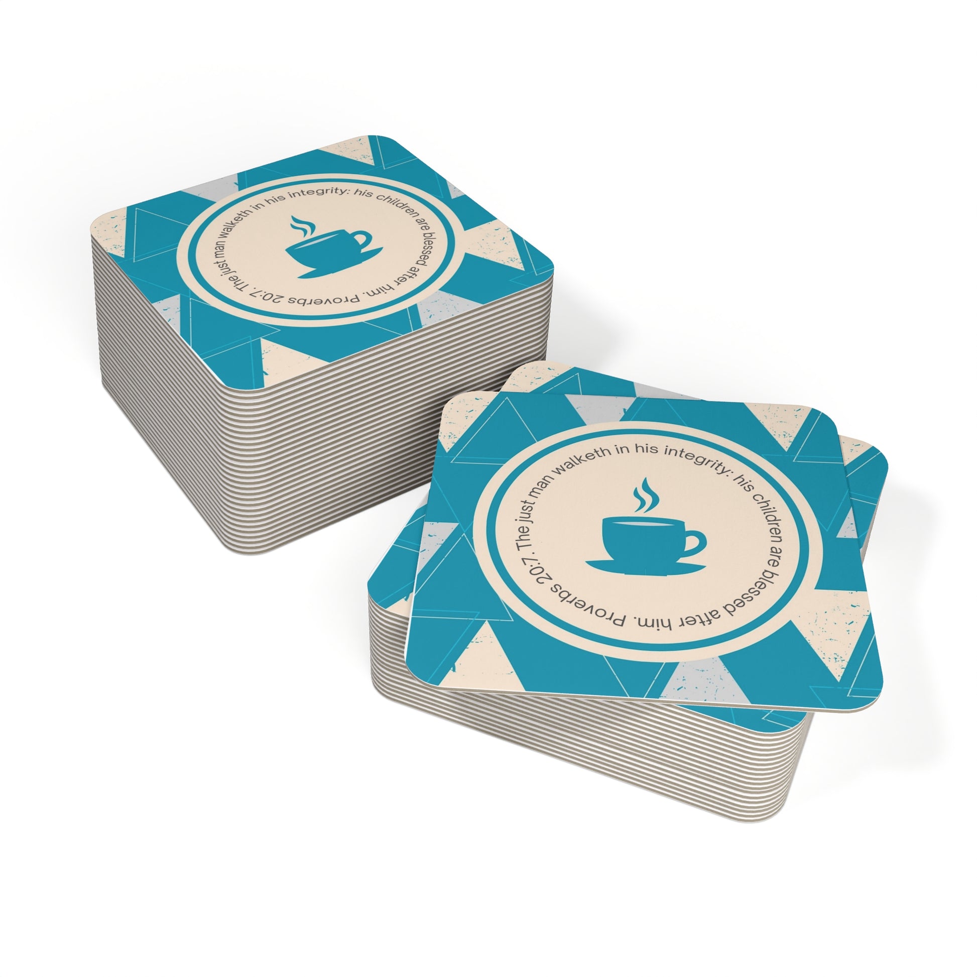 These square-shaped coasters come in a pack of 50 or 100 coasters. Perfect gift for Christian Men, event gifts , father's day.