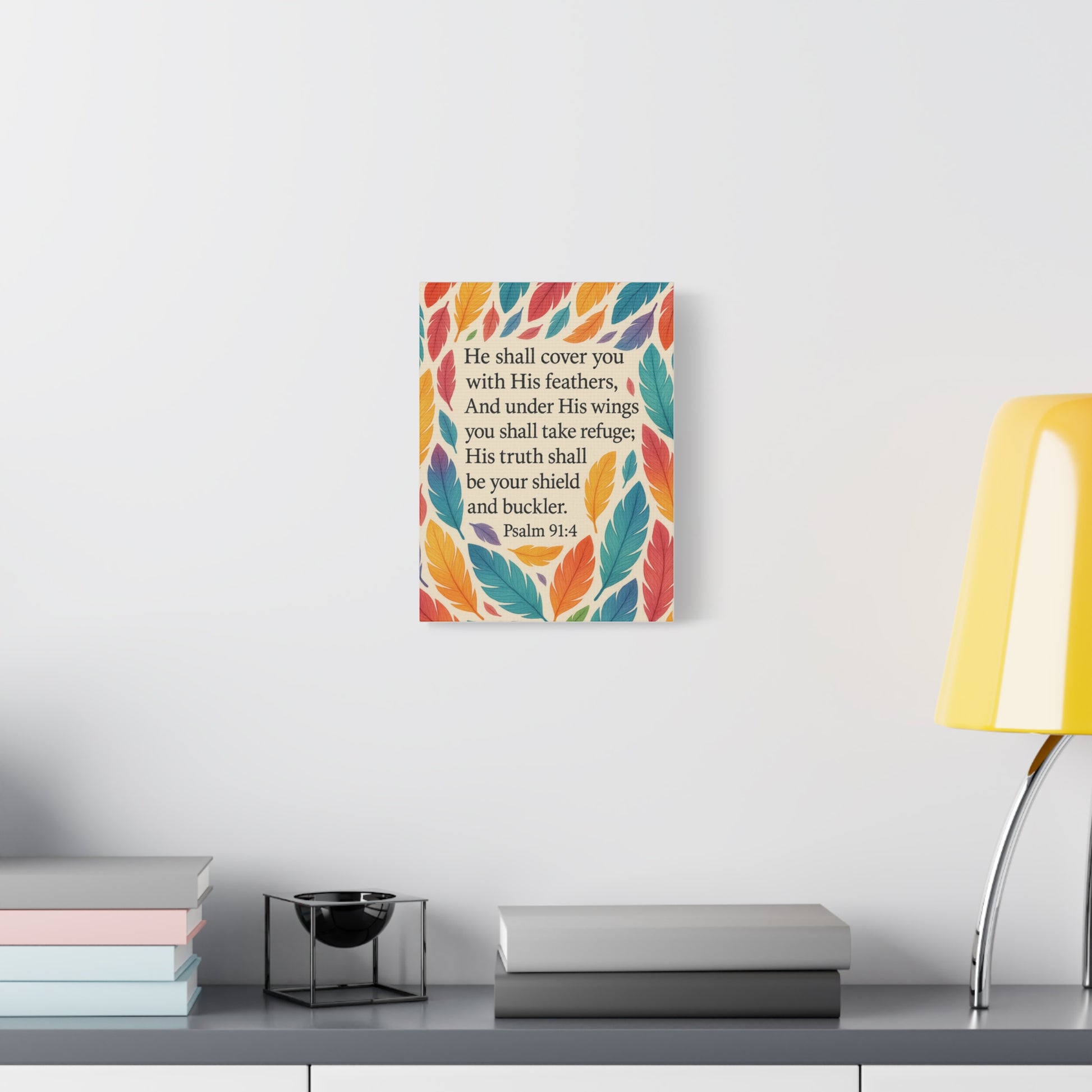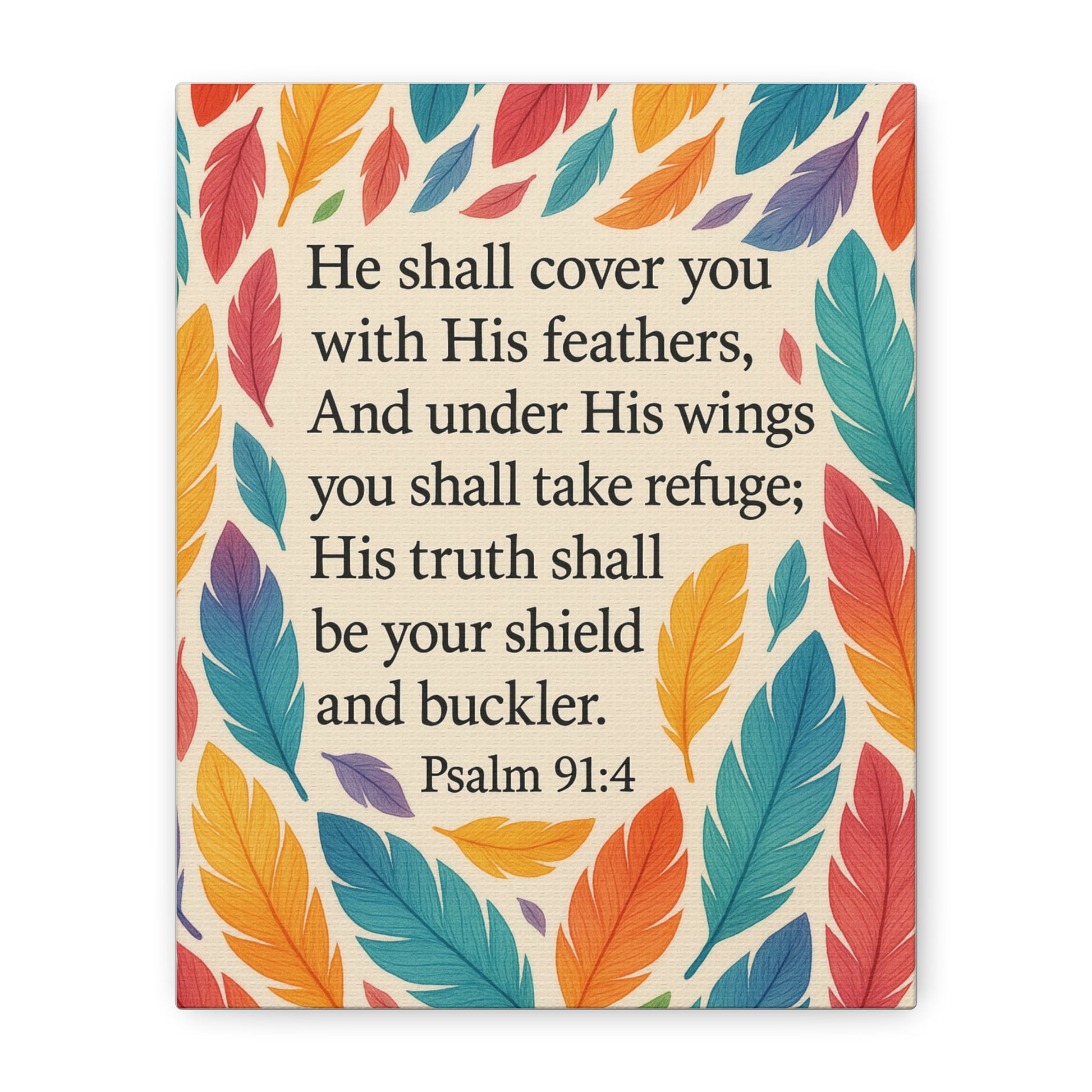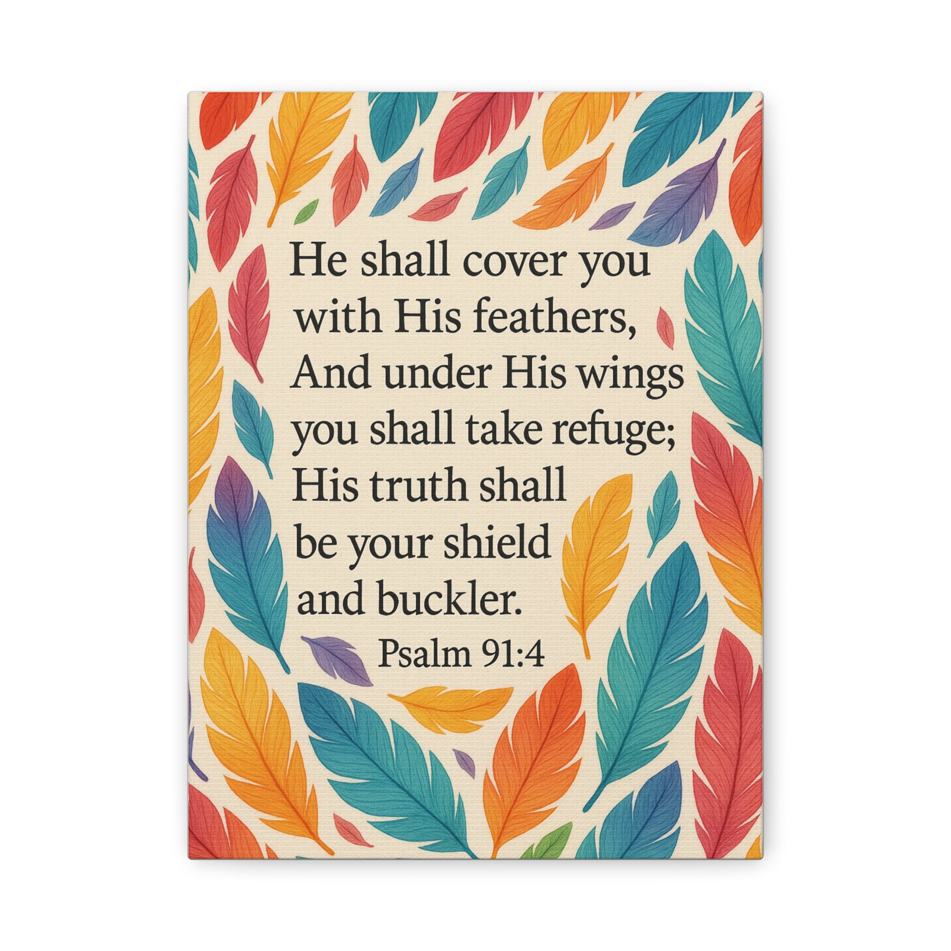 Wall Art Canvas inspired by Psalms 91:4. This canvas is a perfect interior decoration to uplift your home, office, prayer space or children bedroom