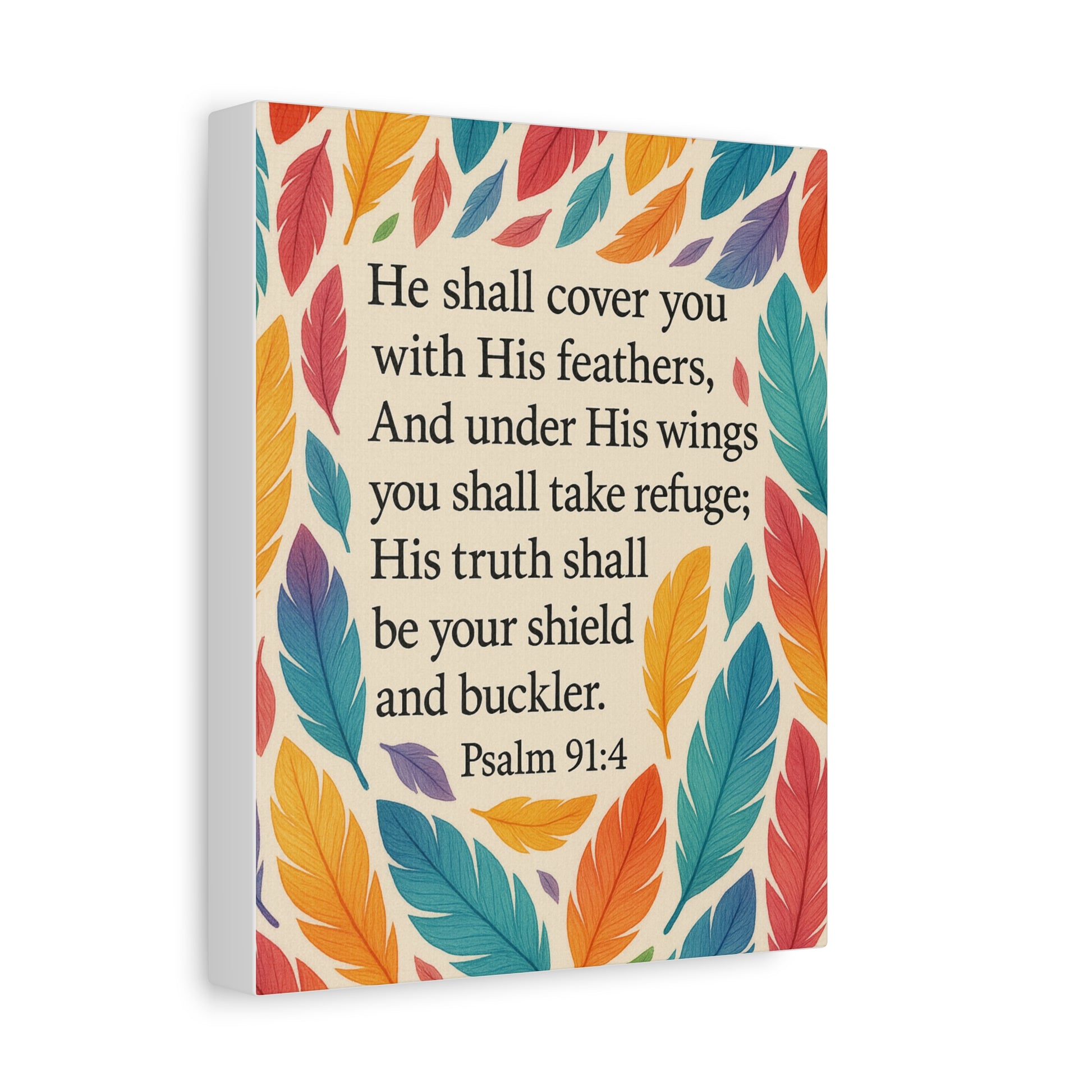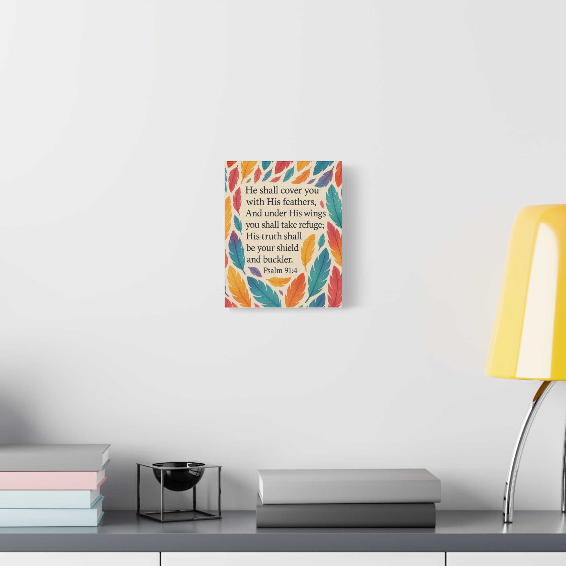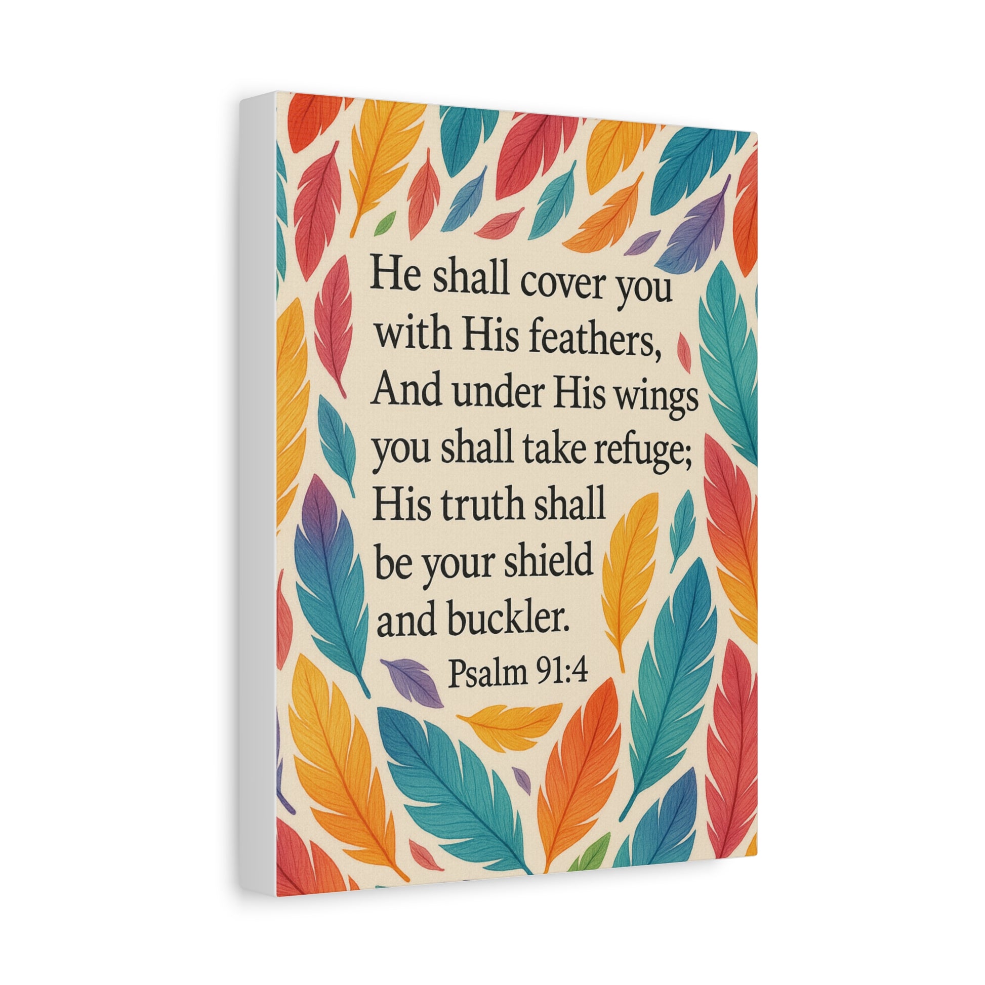 Wall Art Canvas inspired by Psalms 91:4. This canvas is a perfect interior decoration to uplift your home, office, prayer space or children bedroom