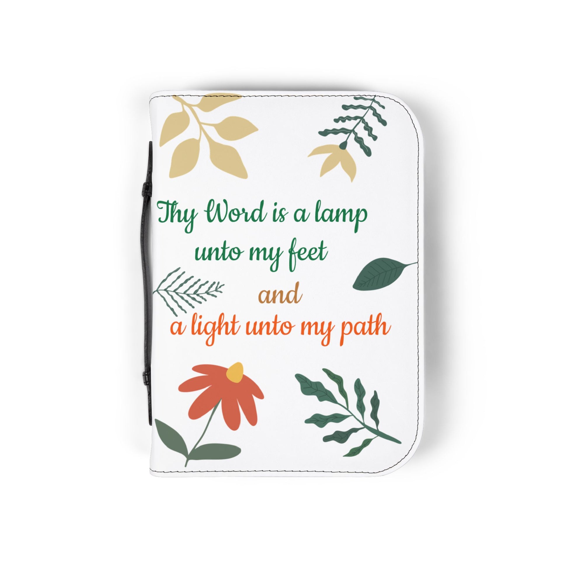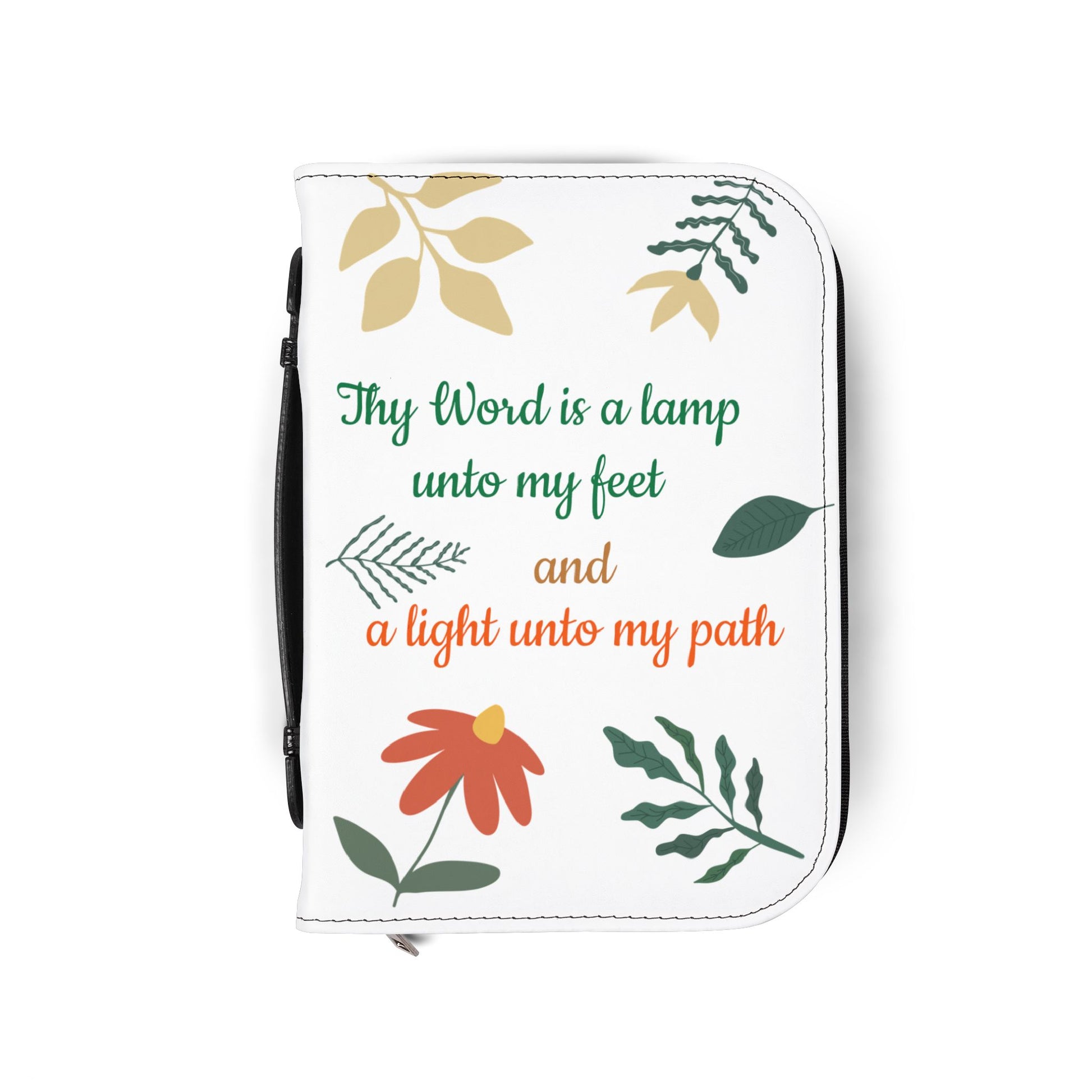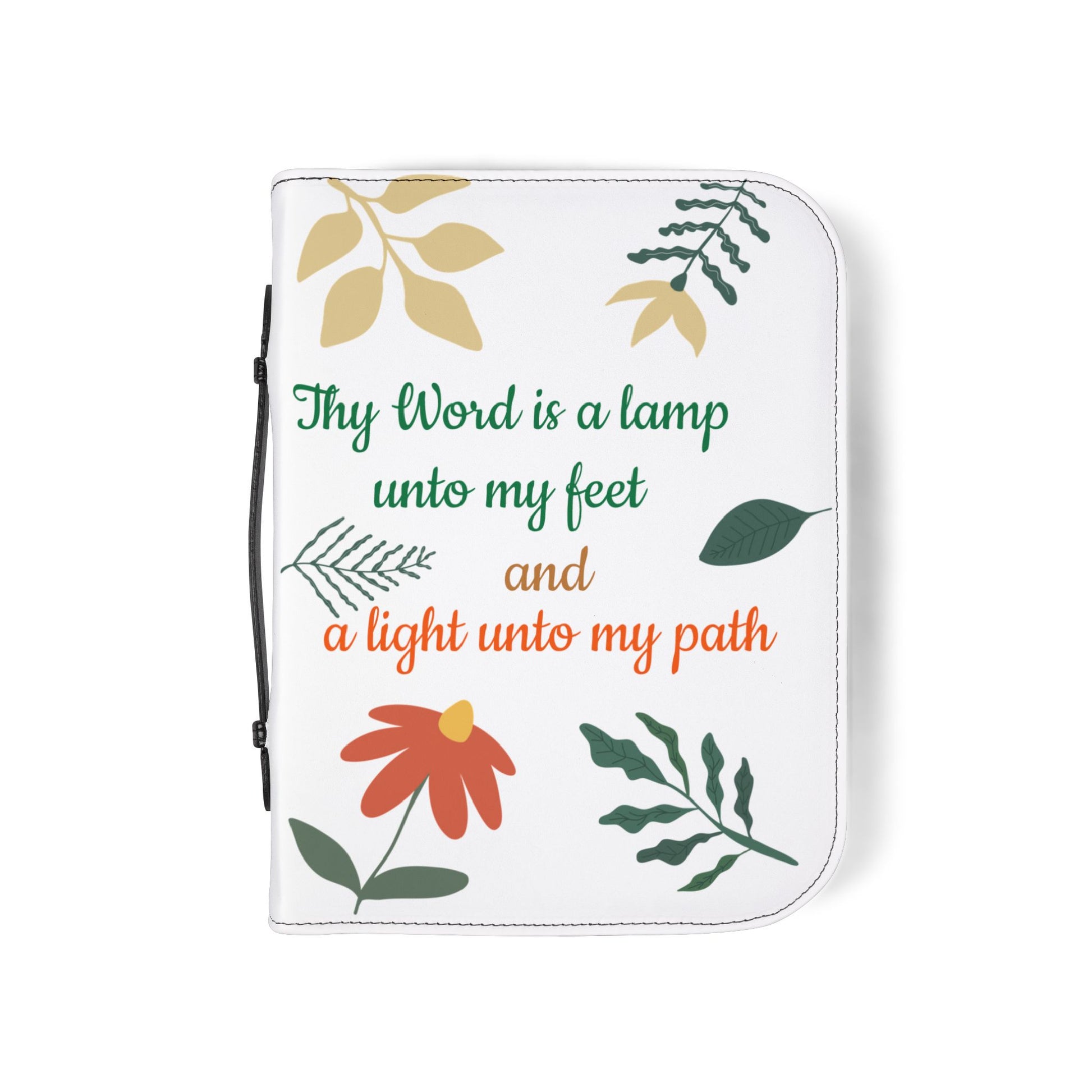 A floral and leaf design Bible Cover inspired by Scripture: "Thy Word is a Lamp unto my Feet and a light unto path"