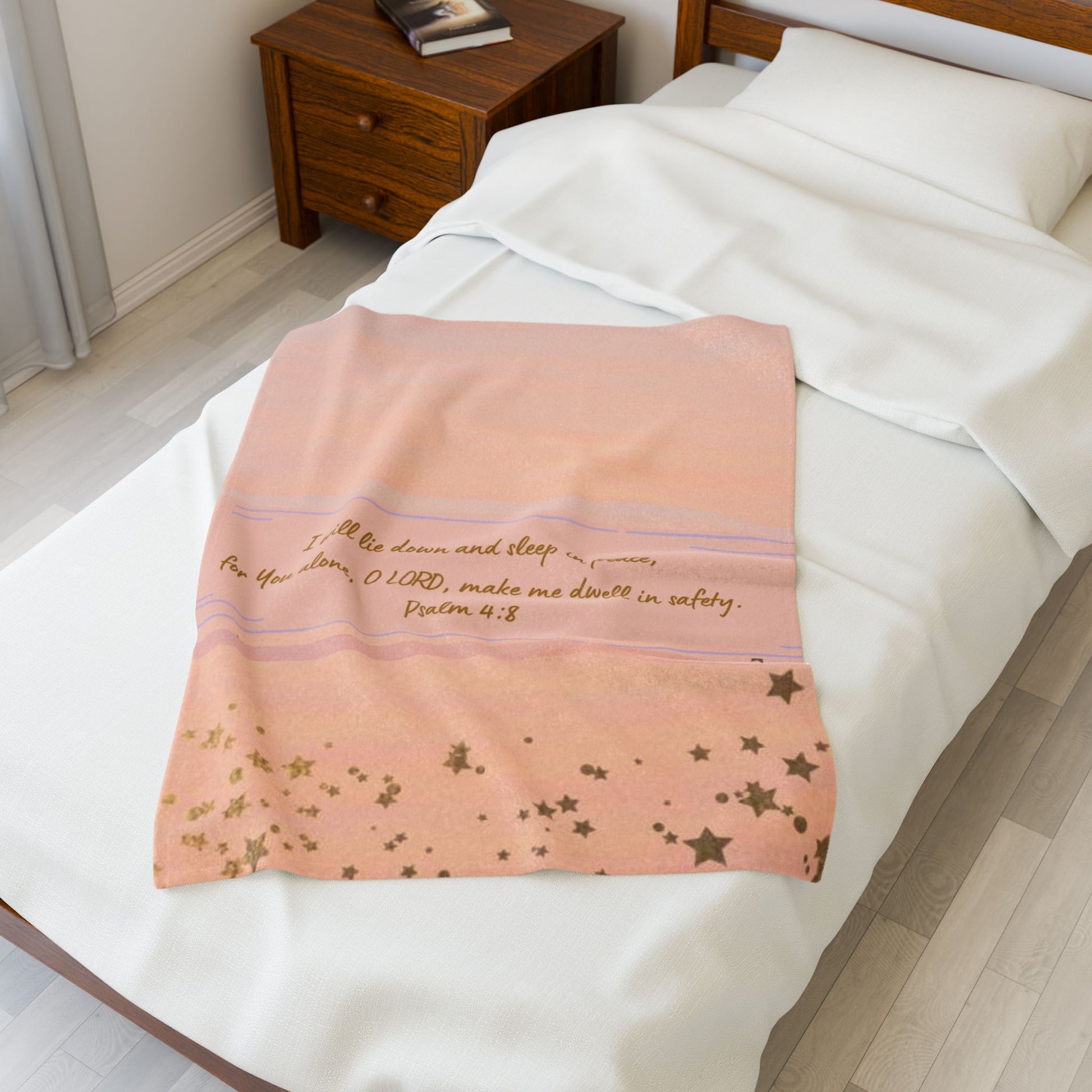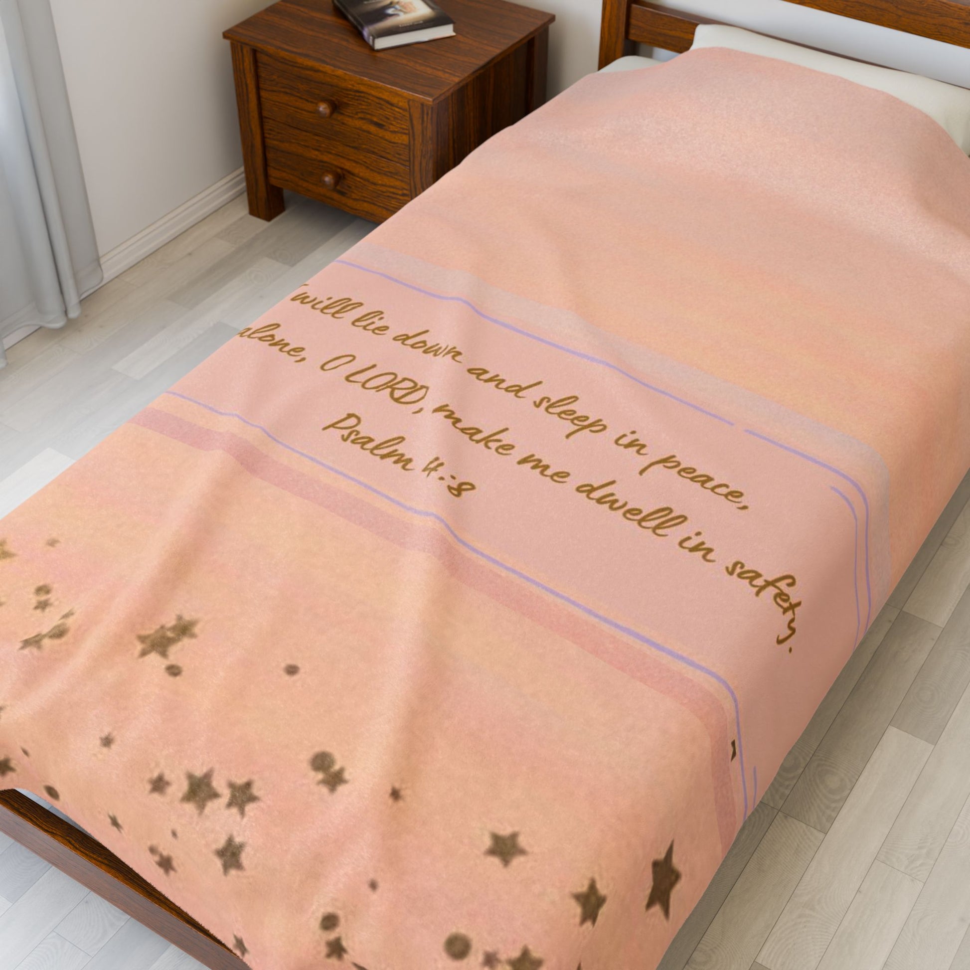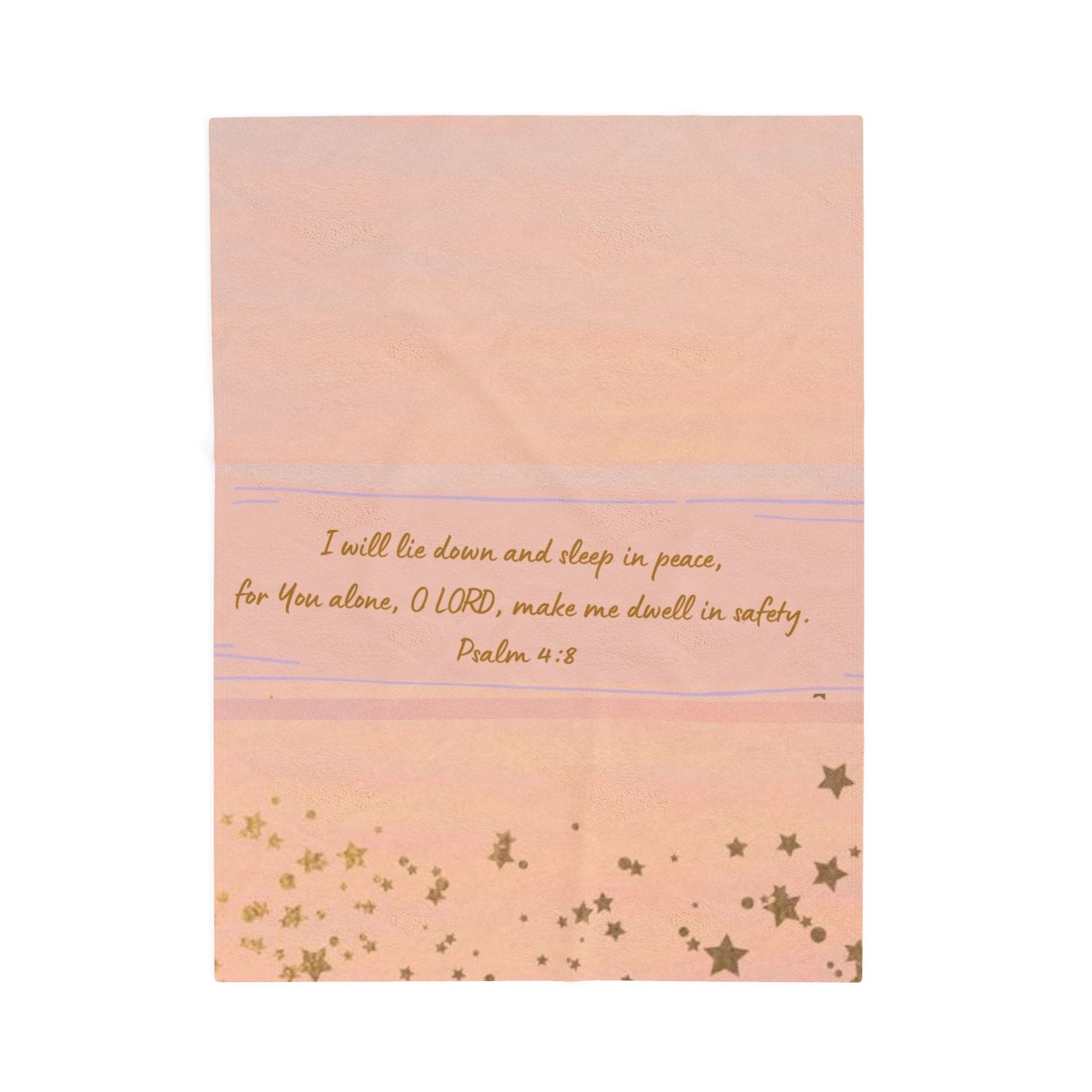 Wrap yourself in comfort with this luxurious Velveteen Plush Blanket. Designed to bring warmth, coziness and the reassurance of God's Word: Psalm 4:8 "I will lie down and sleep in peace, for You alone O Lord make me dwell in safety".