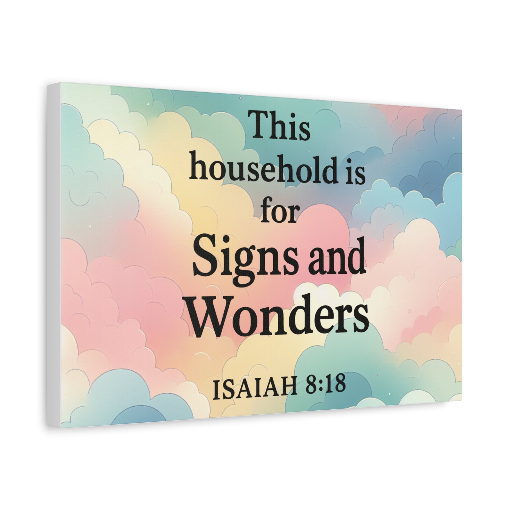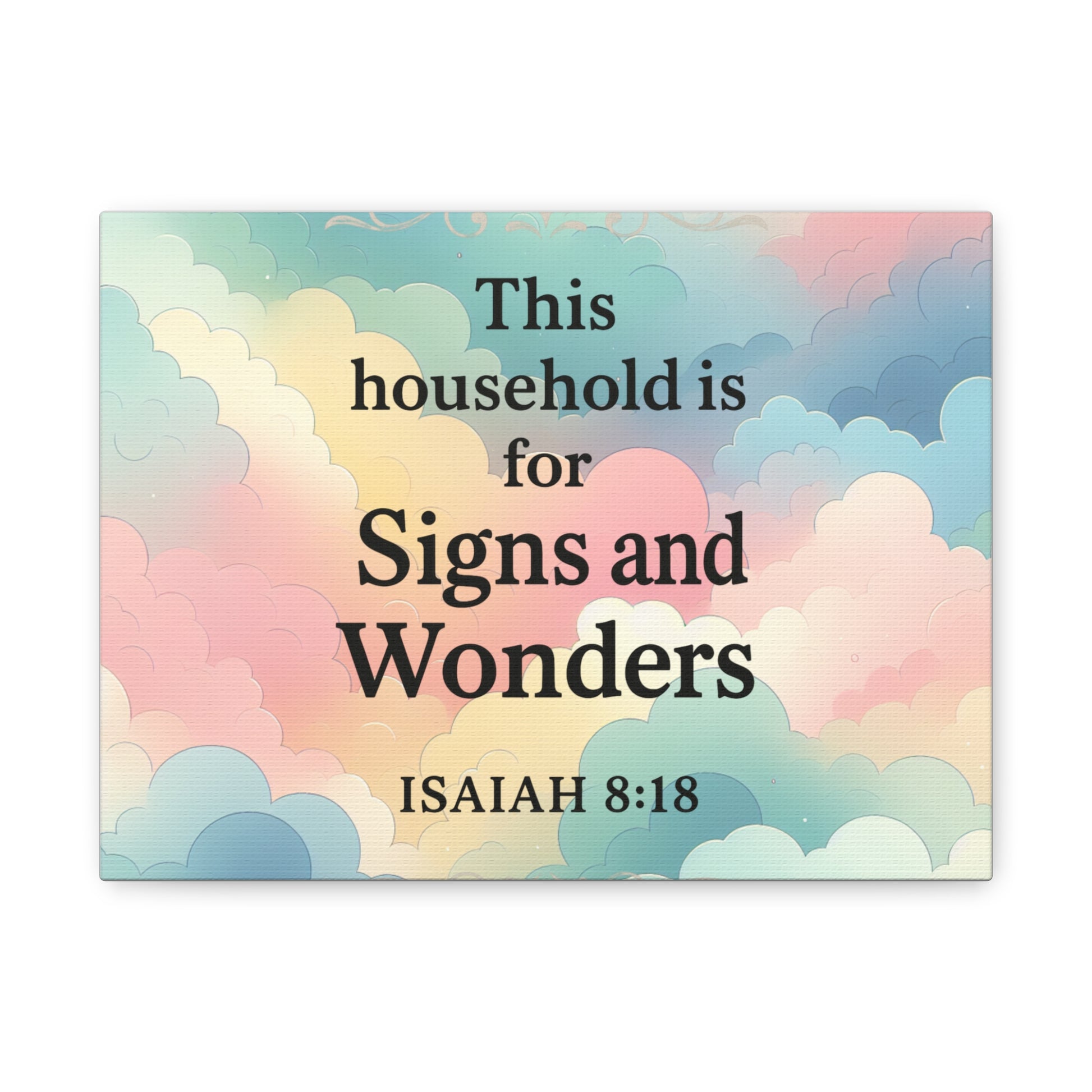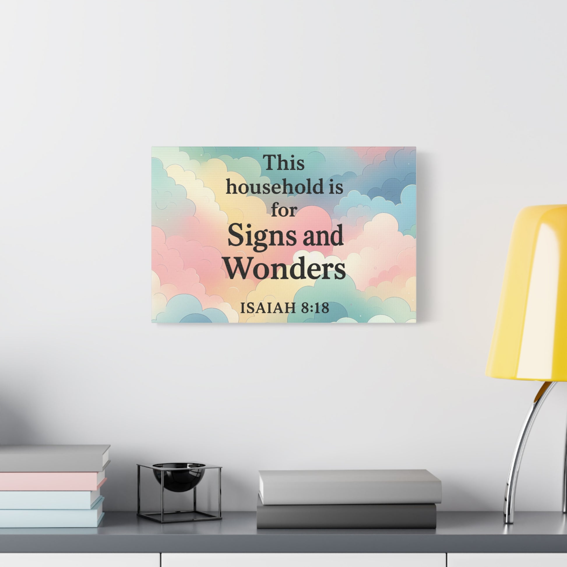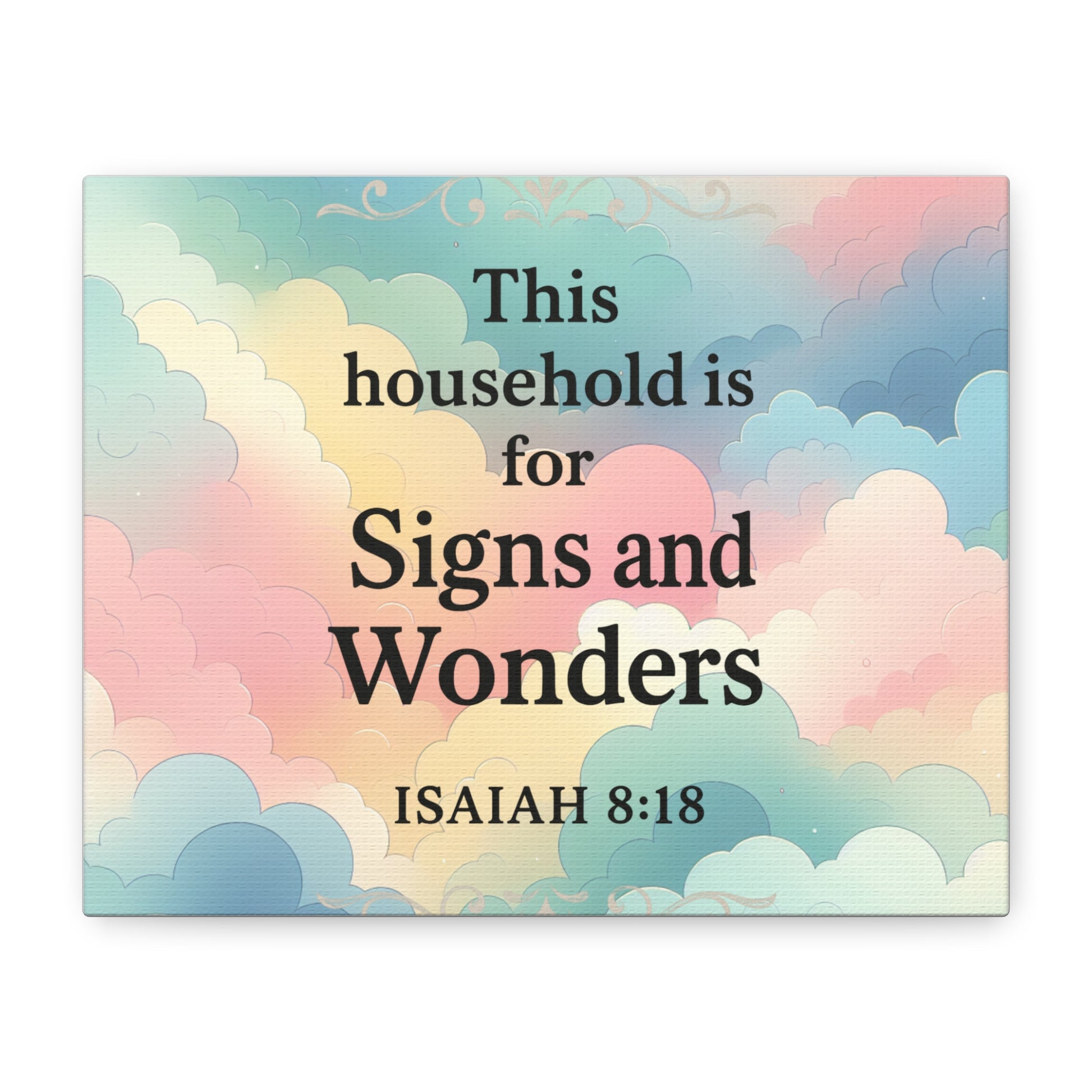 Wall Art Canvas inspired by Isaiah 8:18 declaring that this household and every person in it from Child to Adult is purposes by God for Signs and Wonders . This canvas is a perfect interior decoration to uplift your home, office or prayer space.