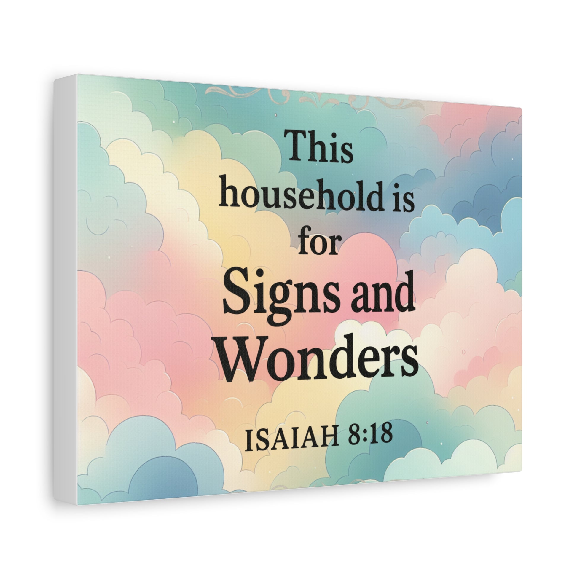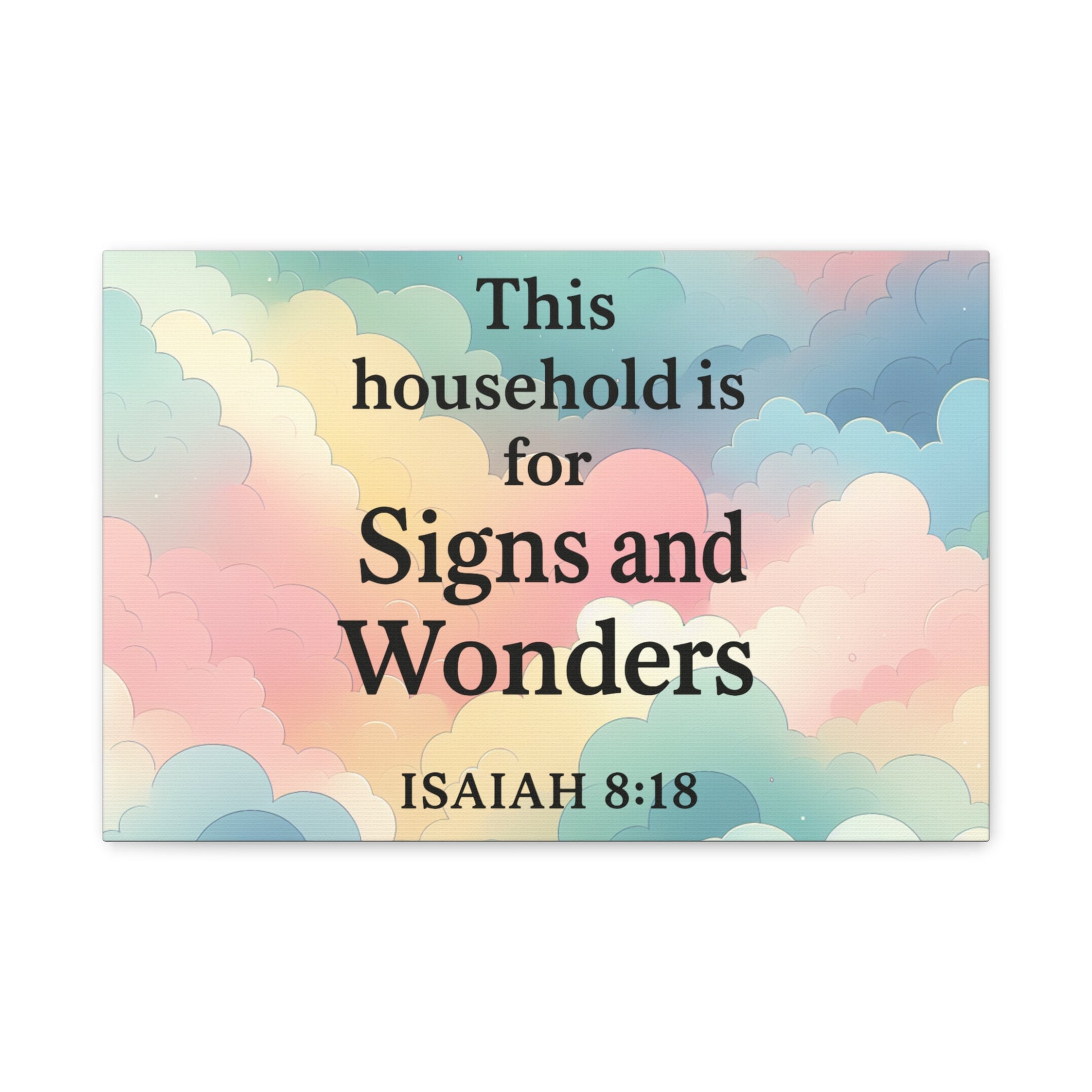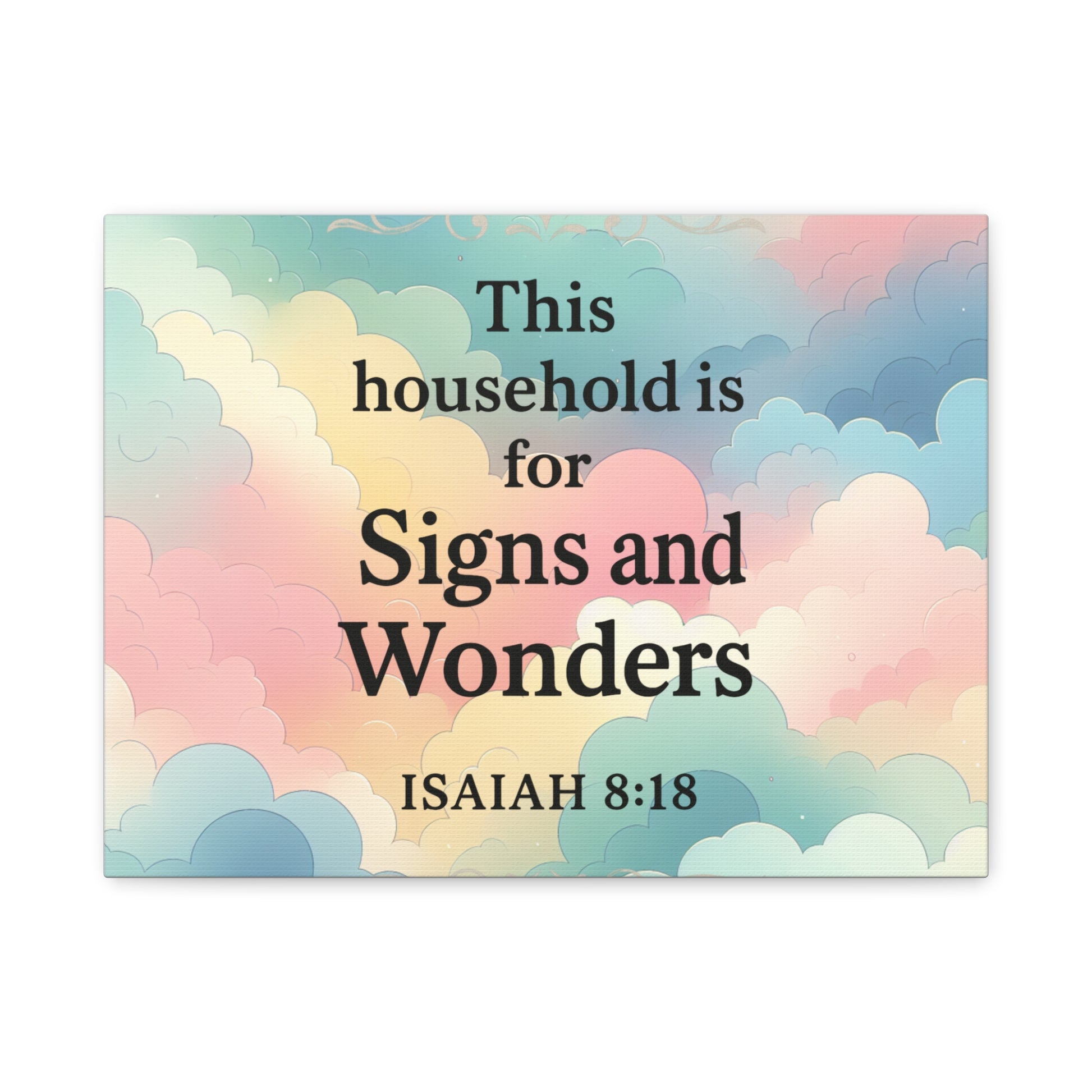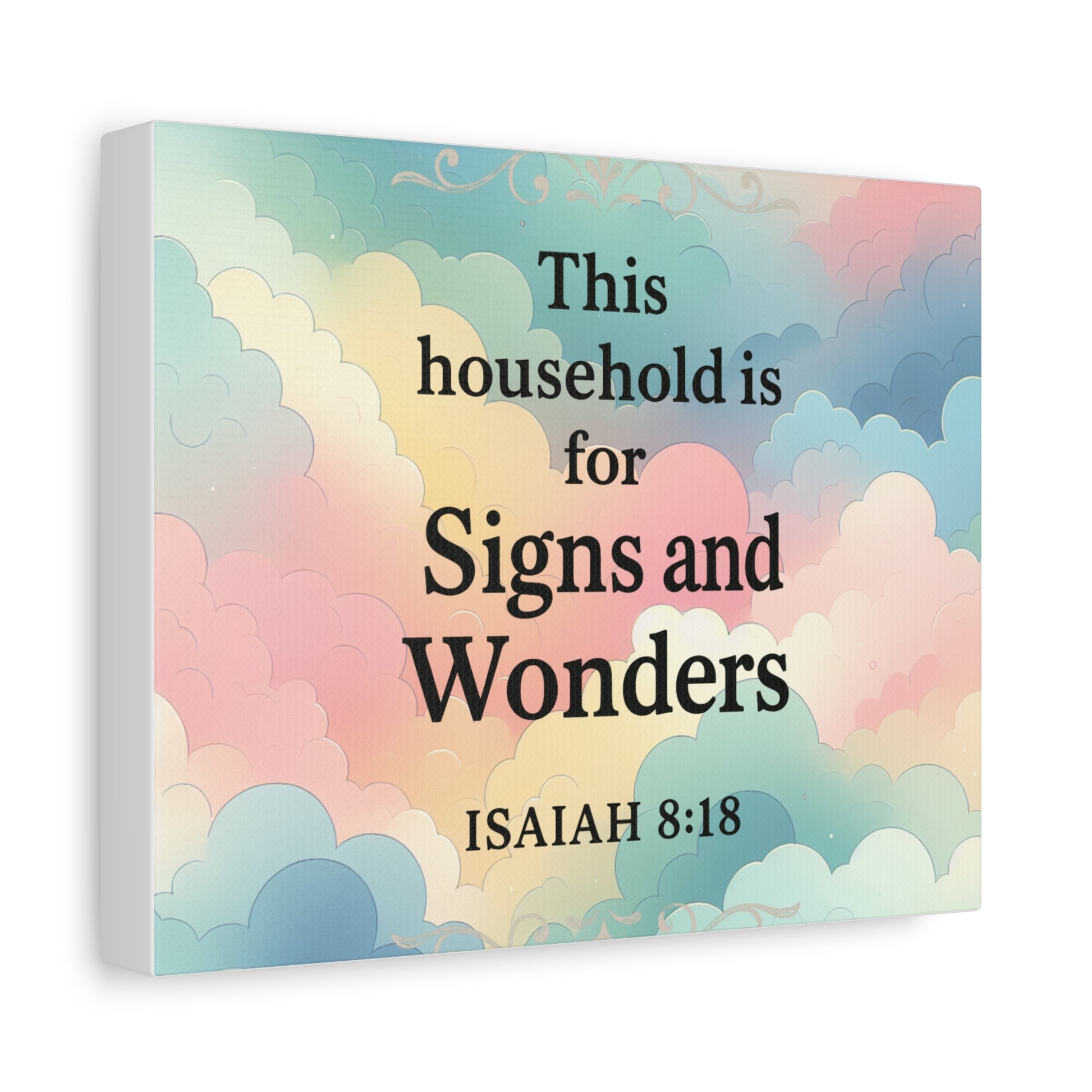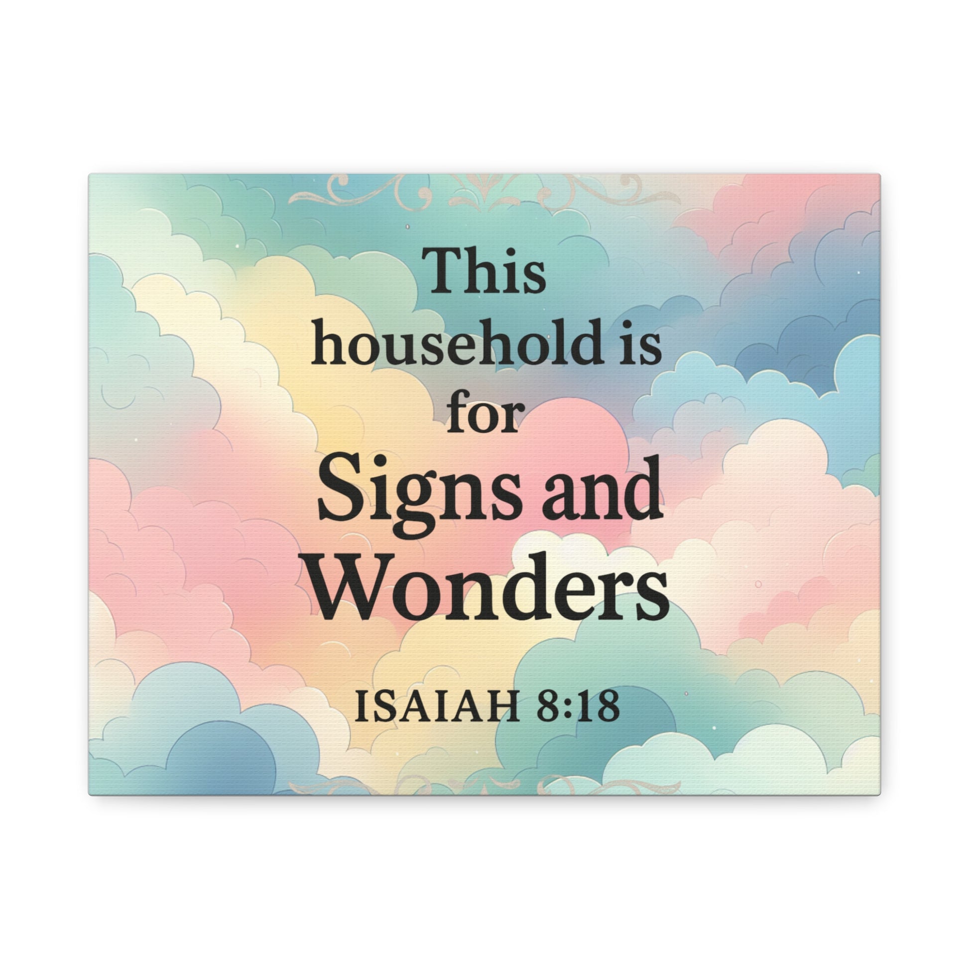 Wall Art Canvas inspired by Isaiah 8:18 declaring that this household and every person in it from Child to Adult is purposes by God for Signs and Wonders . This canvas is a perfect interior decoration to uplift your home, office or prayer space.