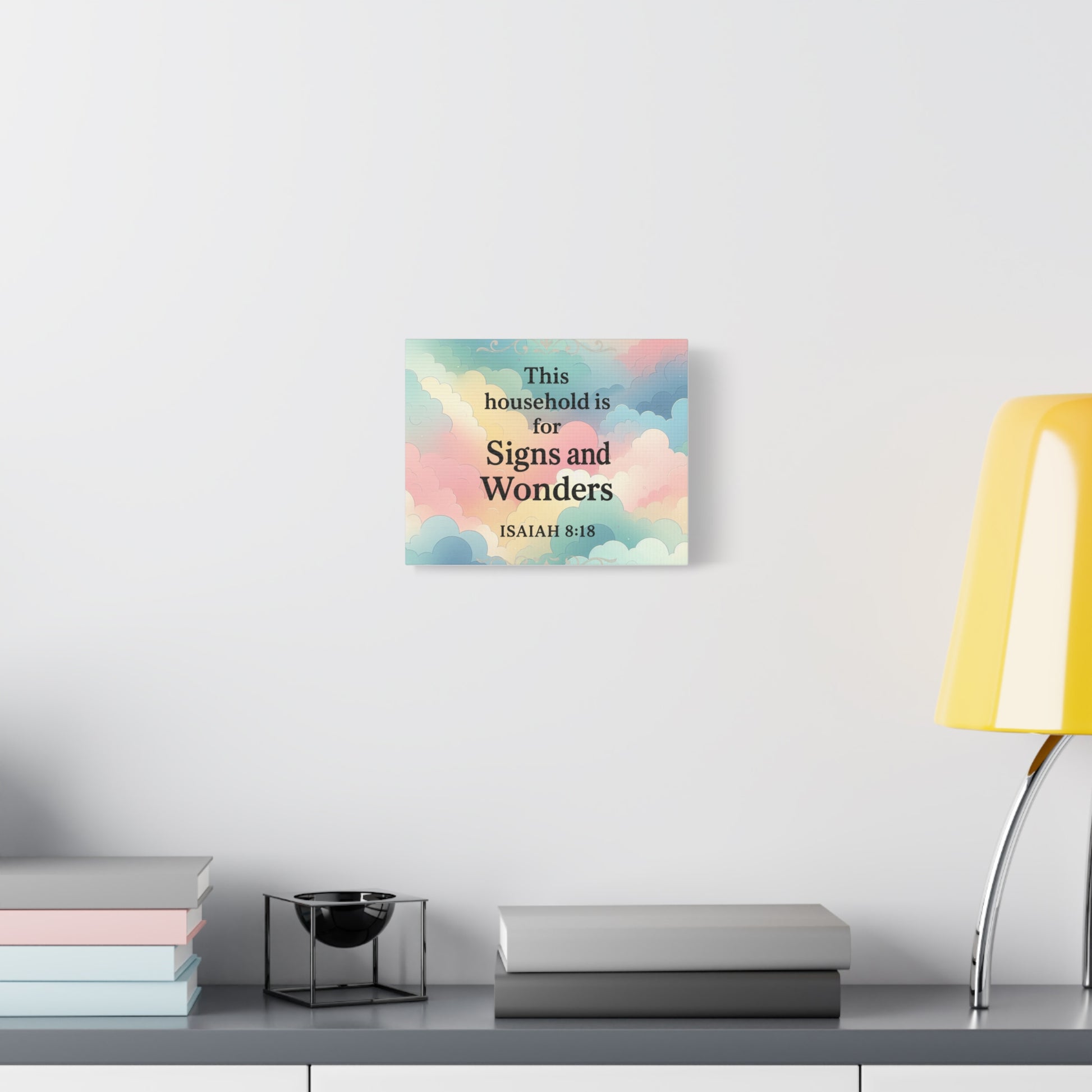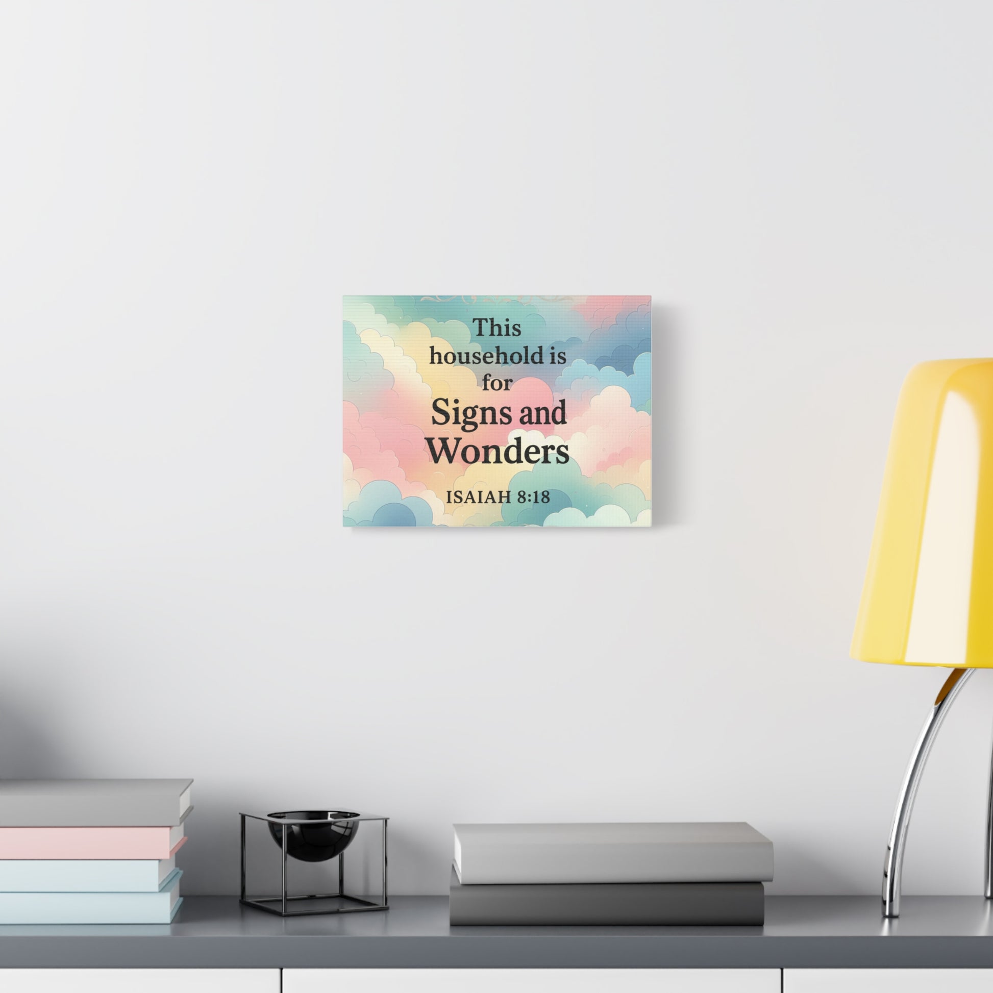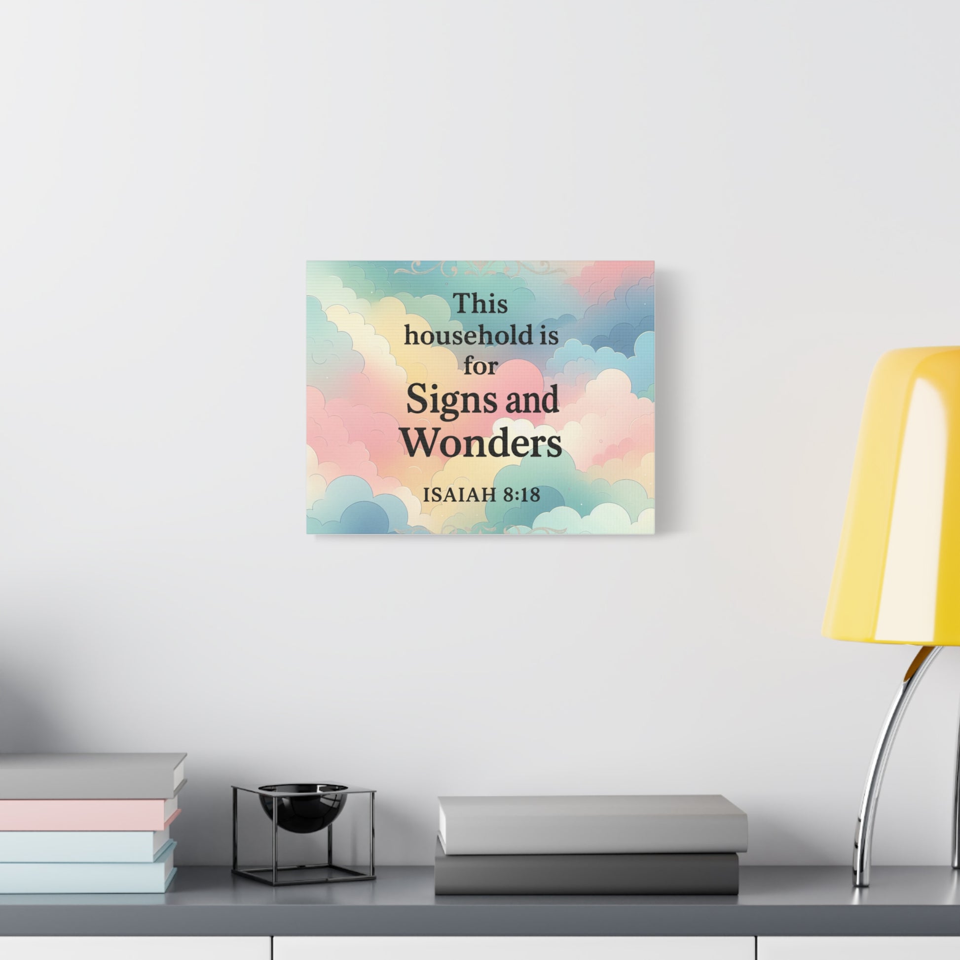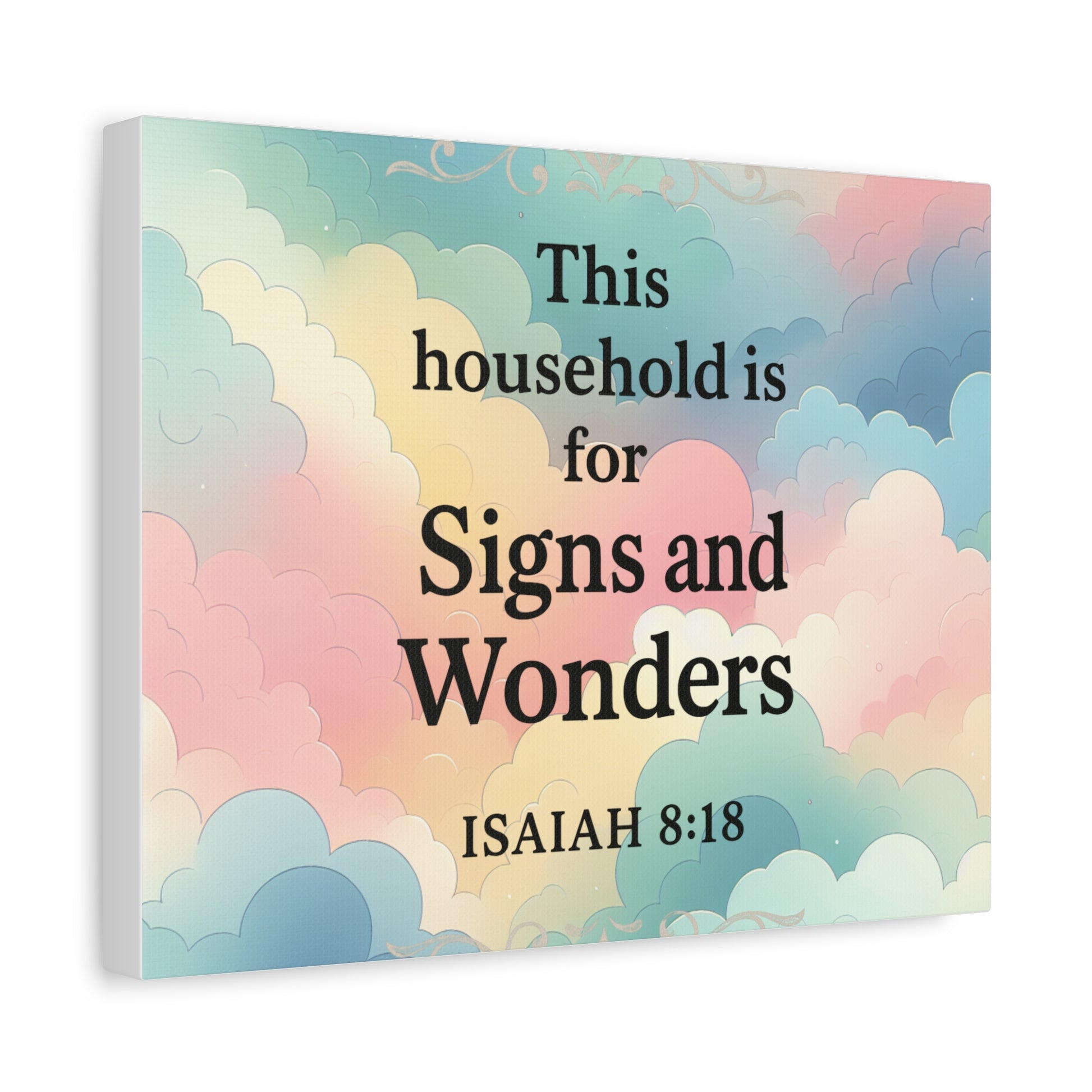 Wall Art Canvas inspired by Isaiah 8:18 declaring that this household and every person in it from Child to Adult is purposes by God for Signs and Wonders . This canvas is a perfect interior decoration to uplift your home, office or prayer space.