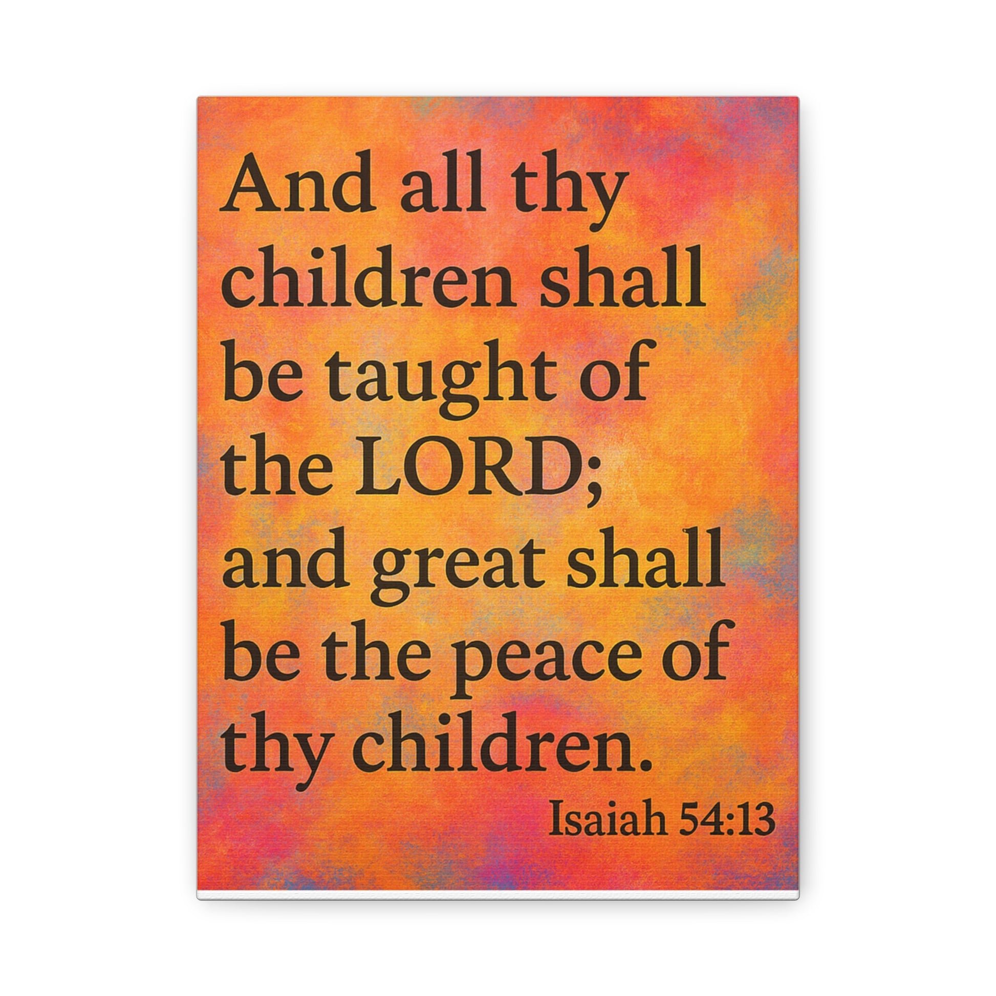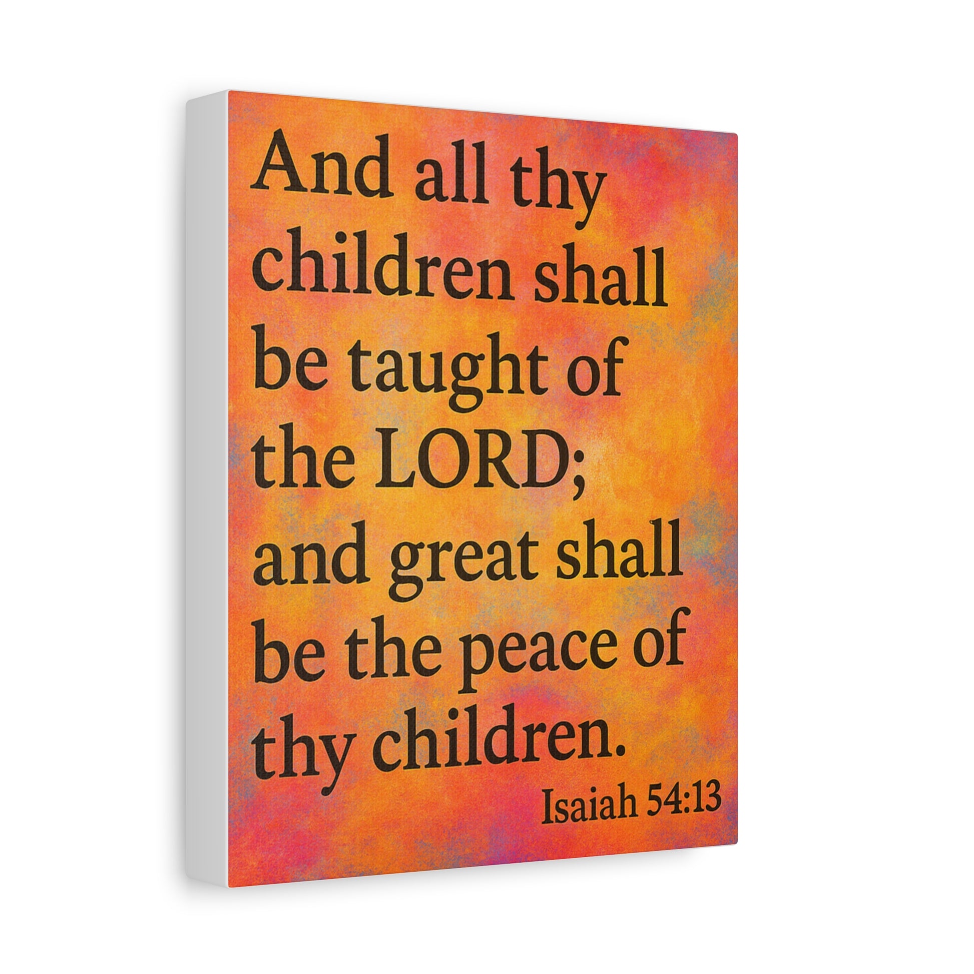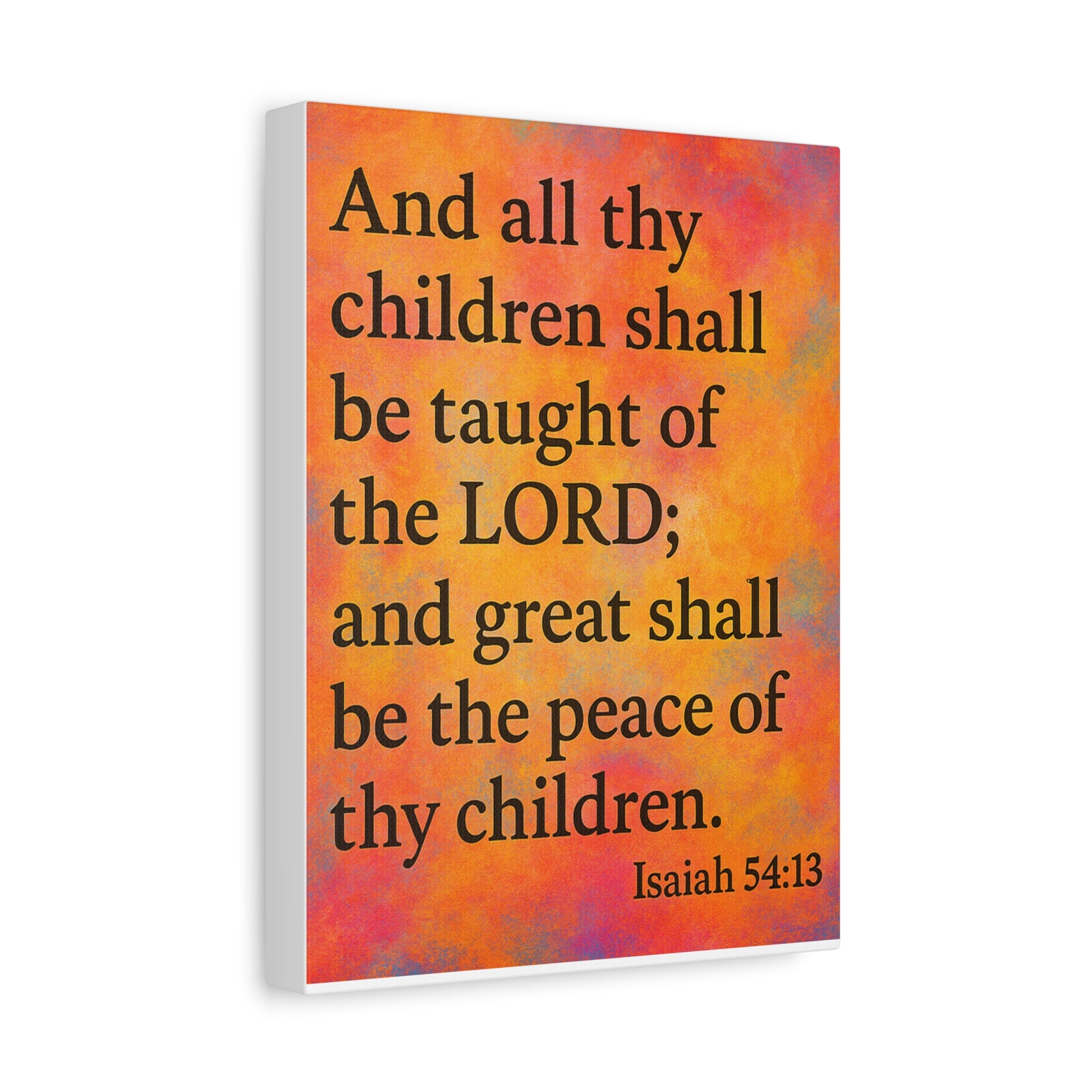 Wall Art Canvas inspired by Isaiah 56:13 declaring that our children will be taught of God and great will be their peace. This canvas is a perfect interior decoration to uplift your home, office, prayer space or children bedroom
